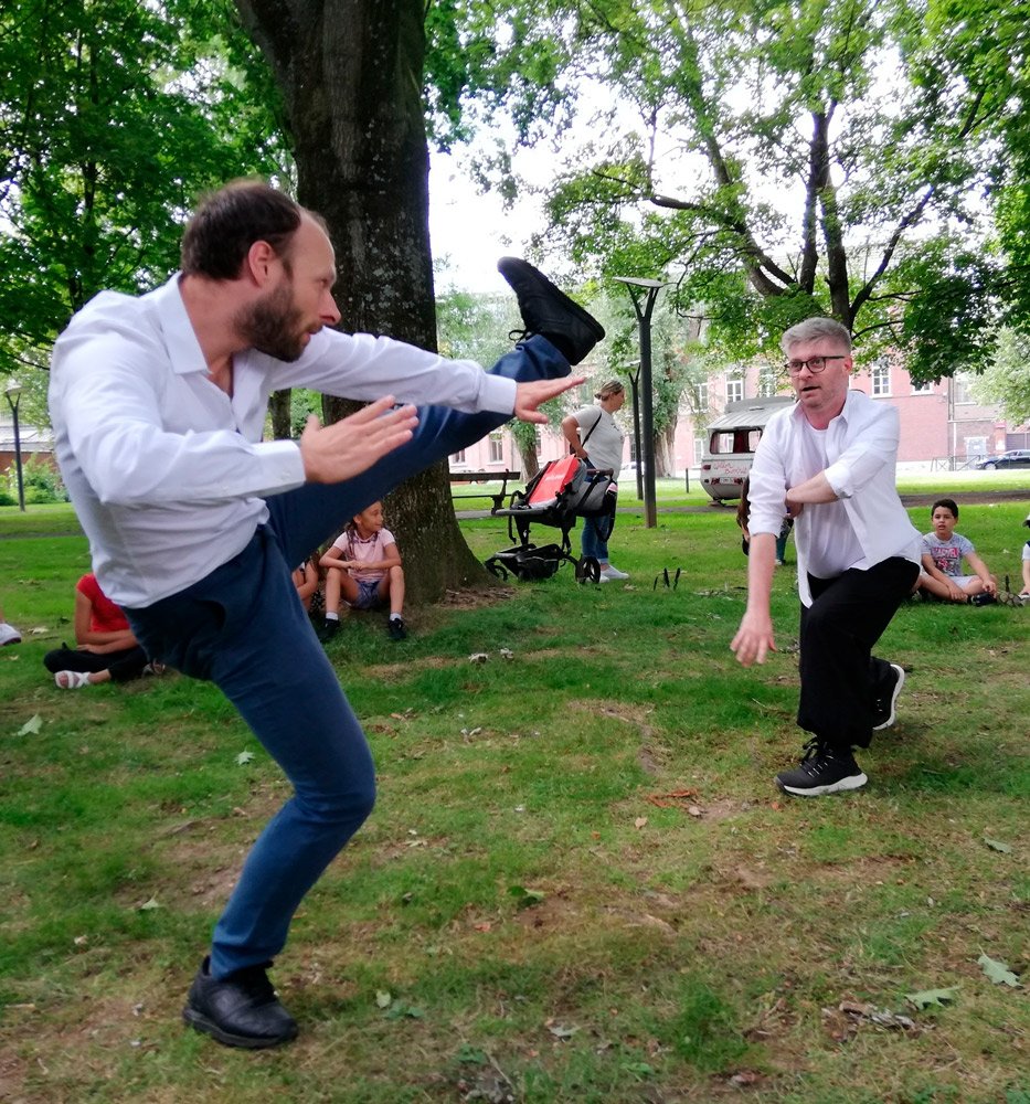 Dans’Action est une performance participative née d’une initiative de la danseuse Ana Stegnar lors du premier confinement, lorsqu’il était nécessaire d’apporter du mouvement dans une immobilité imposée et qu’il fallait réinvestir les corps et le faire à la portée de toutes et tous.