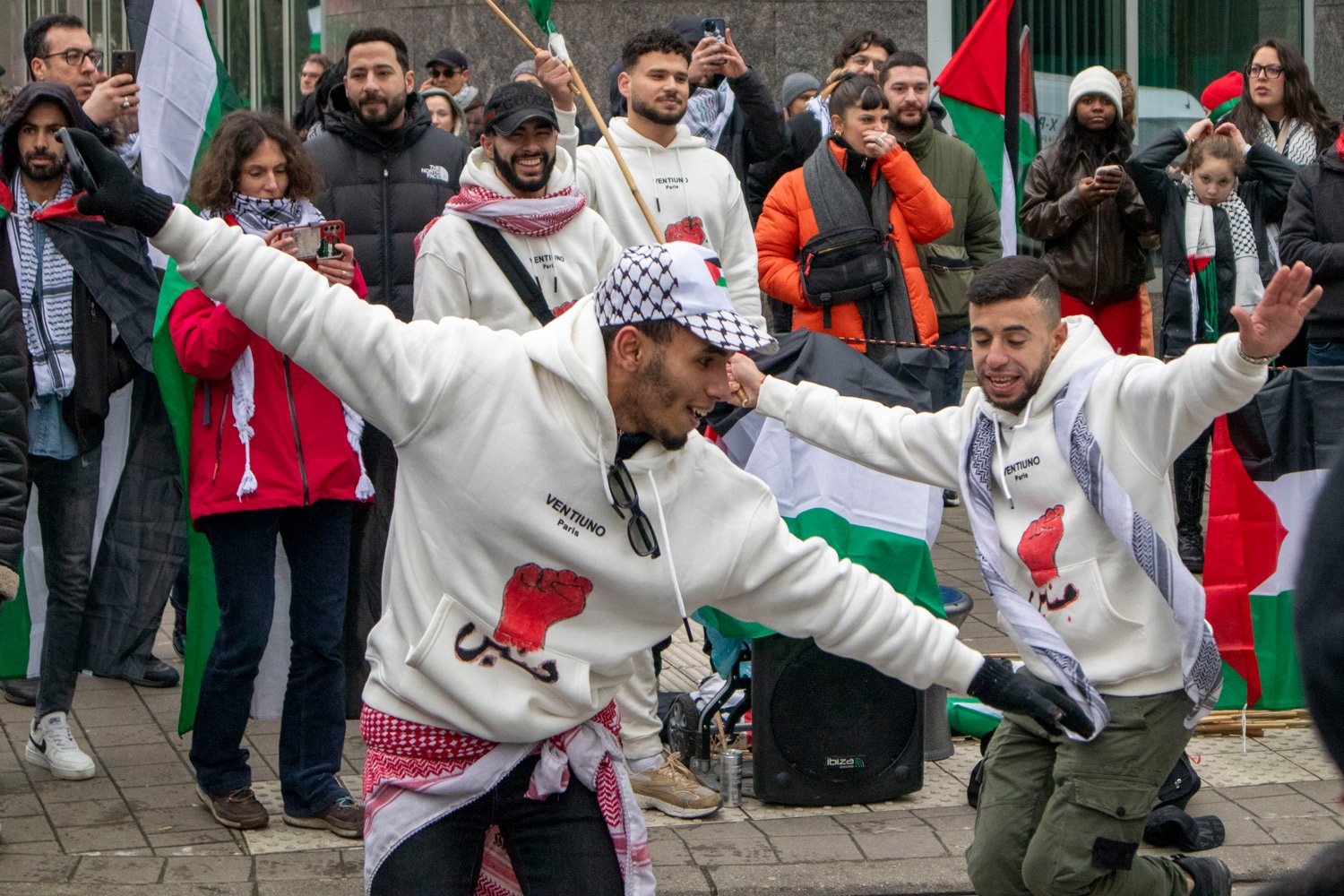 Le titre plus complet de cette série de photographie devrait être : Portrait de manifestations de soutien au peuple palestinien.