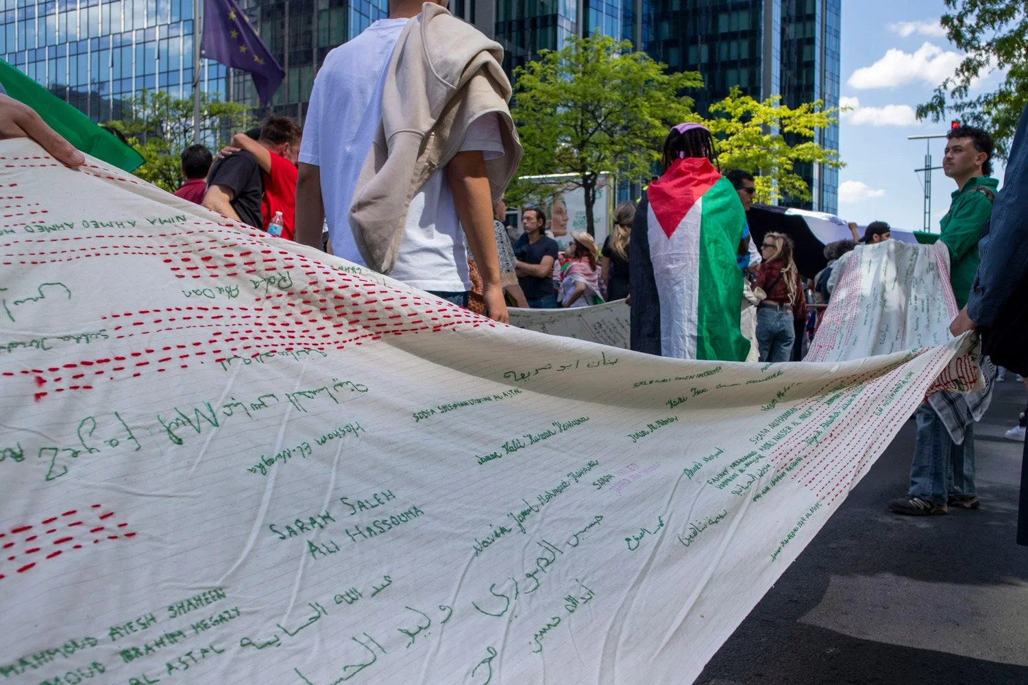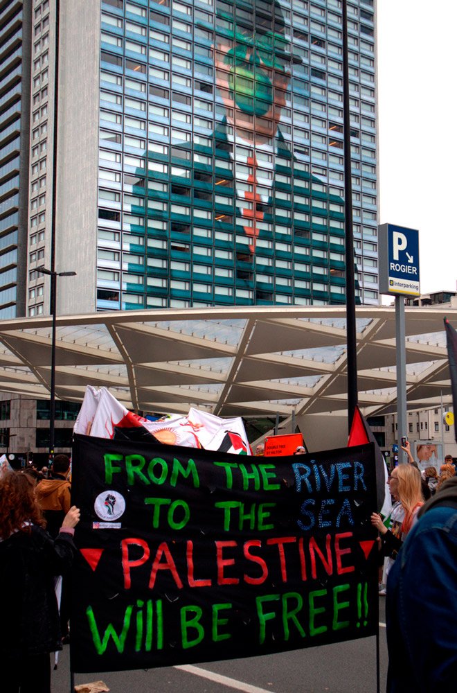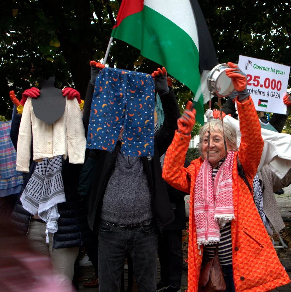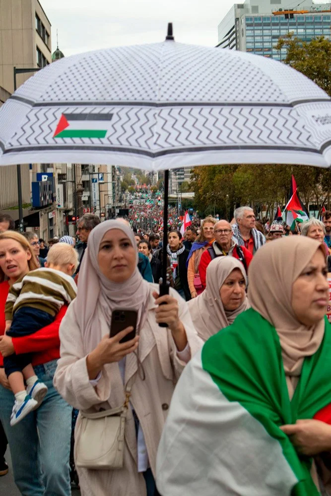 Révoltée par la situation que doit subir la population palestinienne, je participe à plusieurs manifestations organisées à Bruxelles entre 2024 et 2025.